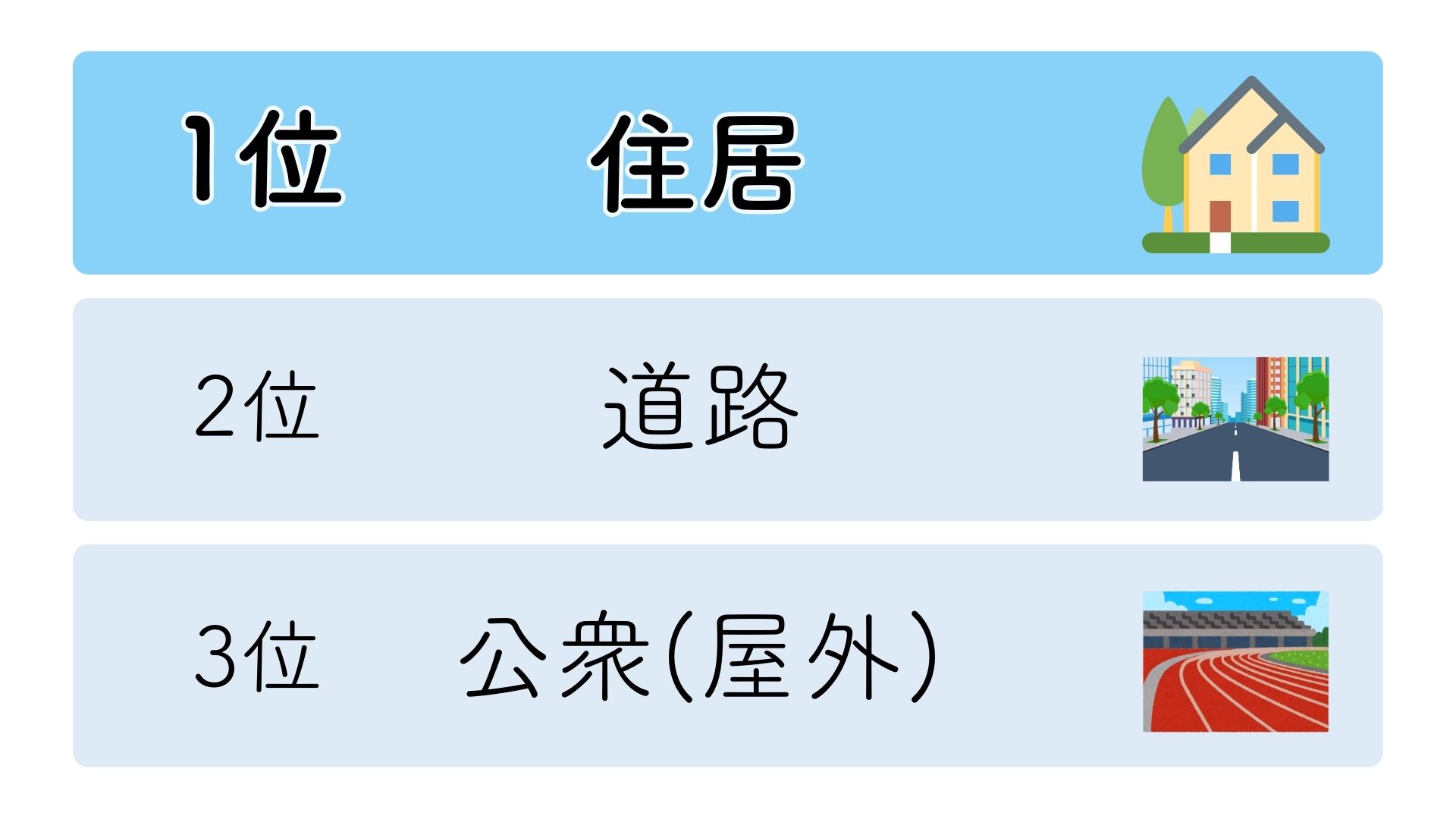 ここでは、熱中症で搬送者が多かった条件を場所とスポーツ、月に分けて解説します。