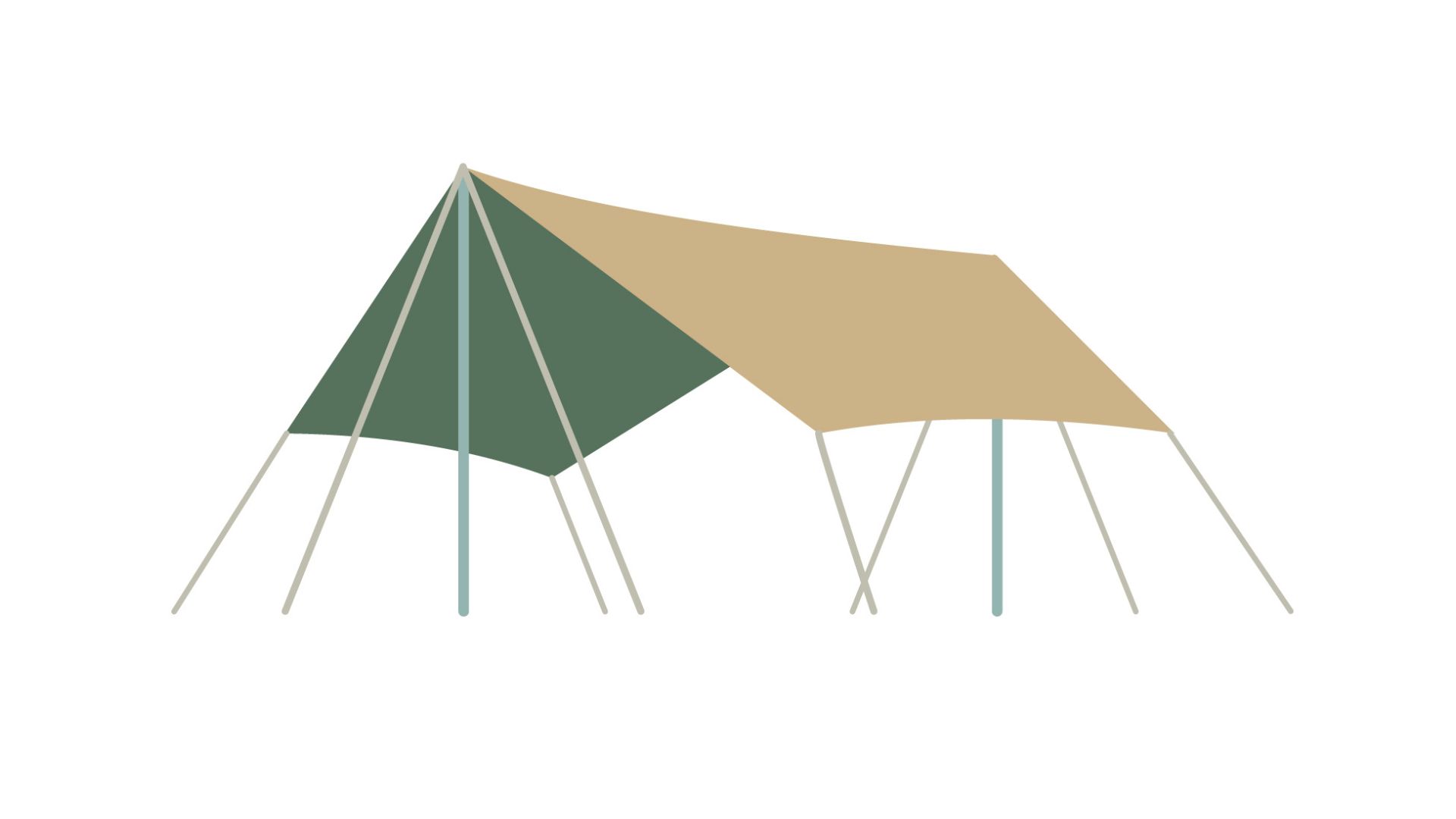 タープとは、日差しや雨を防ぐための布製の屋根です。夏キャンプでは、タープを使った日陰の確保が必要です。加えて、リビングスペースづくりや雨よけにも活用できます。