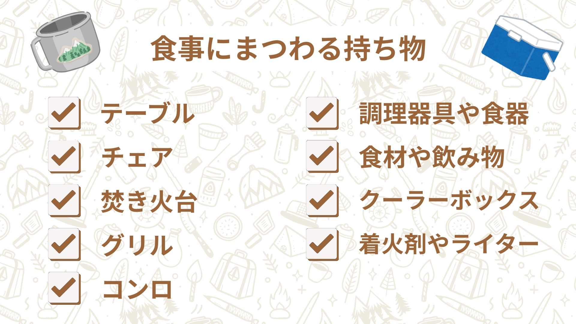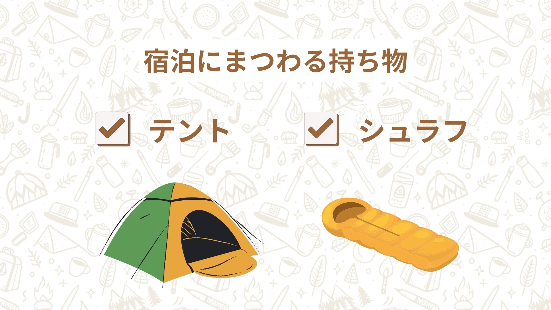 はじめに、キャンプでの基本的な持ち物を見ていきましょう。