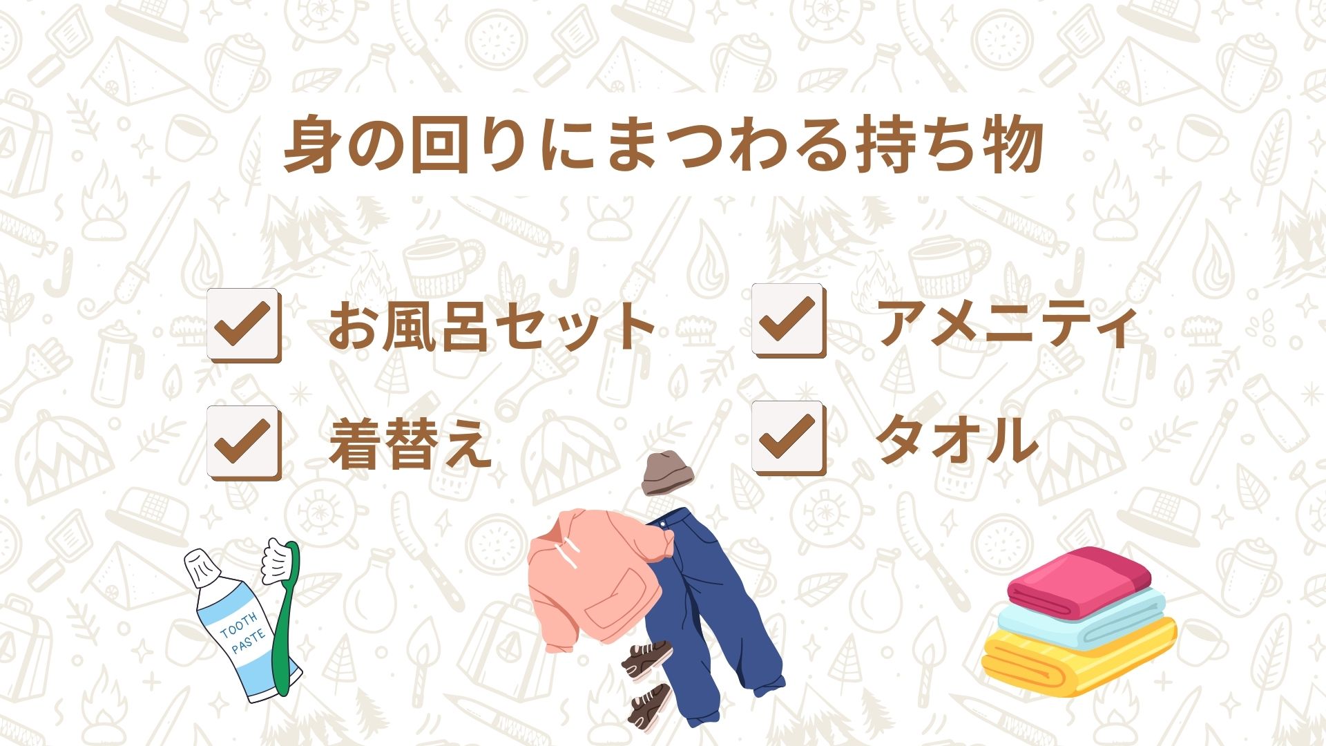 洗顔料や歯みがき用品を持参しましょう。お風呂セットなどとまとめておくと忘れにくくなります。