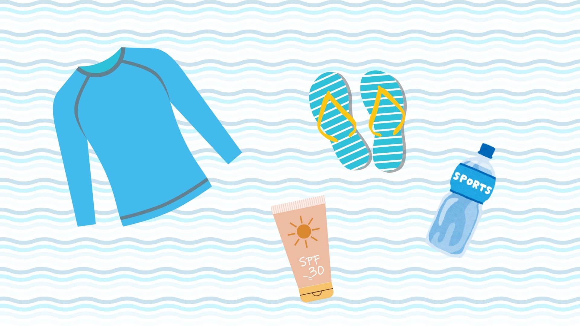 プールサイドだけではなく、水中であっても紫外線は届きます。過度な日焼けは健康に良くないため、紫外線対策として日焼け止めを持っていくと安心です。